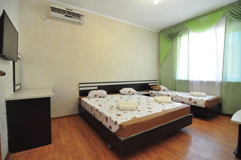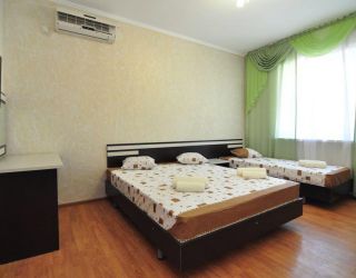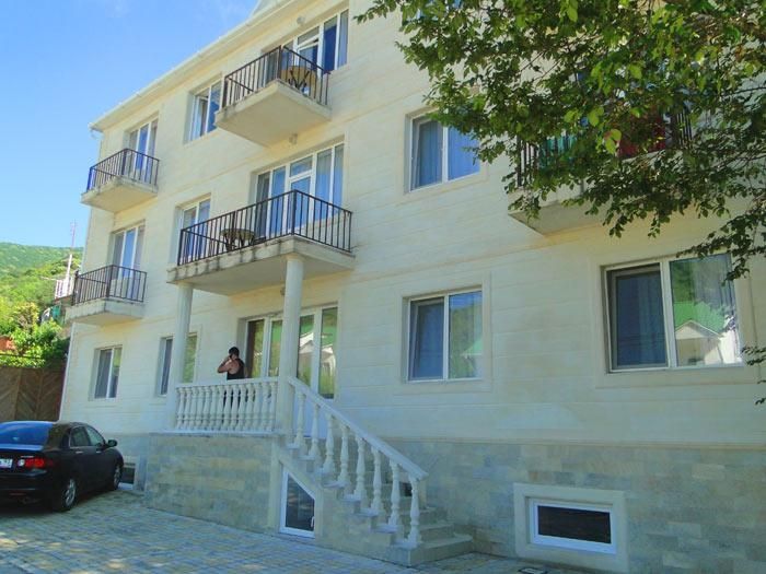 Трехэтажный корпус гостевого дома расположен в тихом живописном месте на выезде из поселка. В распоряжении гостей однокомнатные и двухкомнатные номера с удобствами. Везде предусмотрен санузел с душем, в комнатах – кондиционеры, телевизор, мини-холодильник, сеть wi-fi.