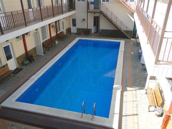 Для удобства отдыхающих в гостевом доме работает столовая, в меню – блюда русской и европейской кухни. К услугам гостей – открытый бассейн и русская баня. Детей в сезон развлекают аниматоры, малышам предоставляются кроватки-манежи и прогулочные коляски.
